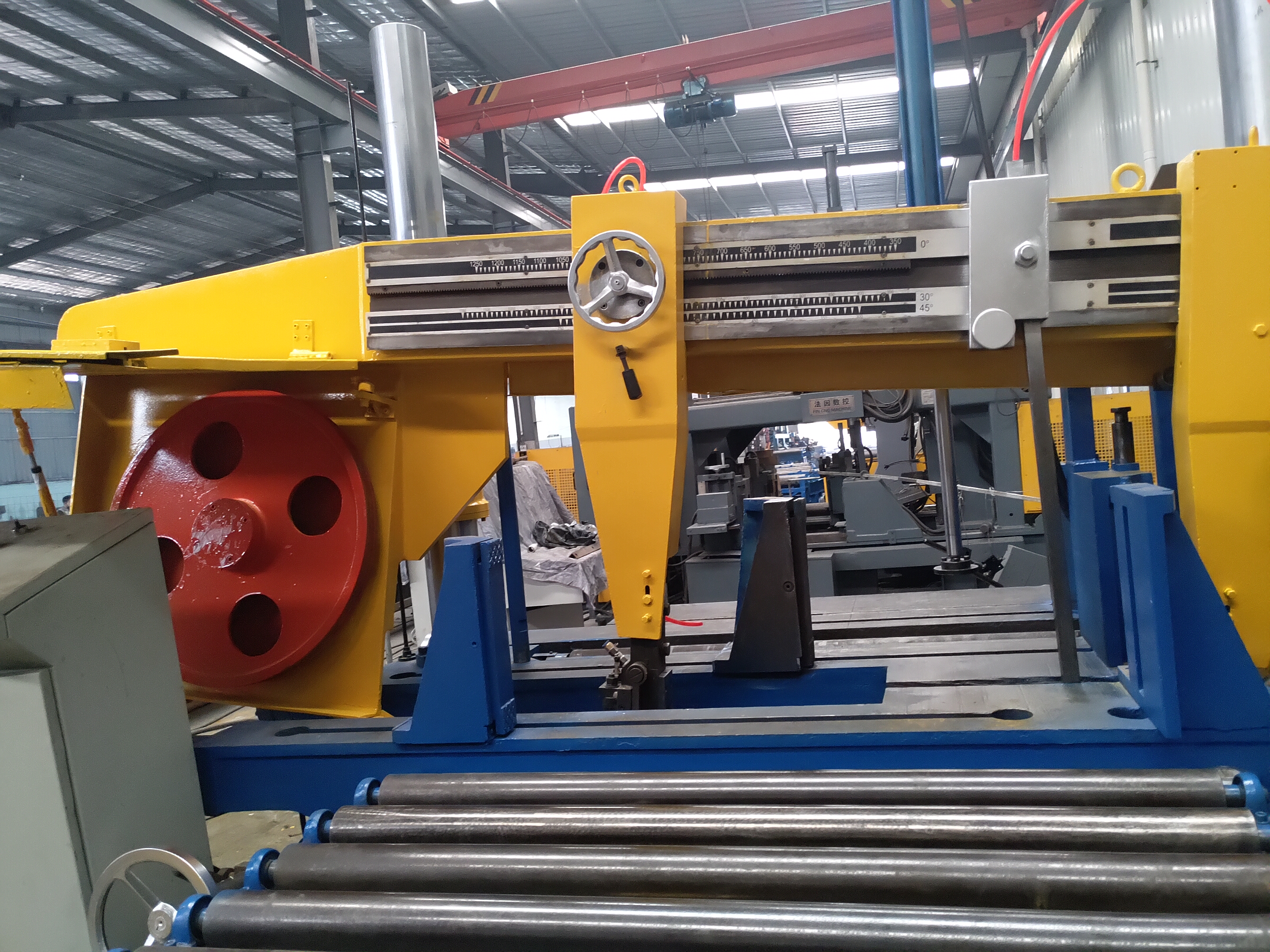 Special machine for sawing H-beams with high cutting efficiency.